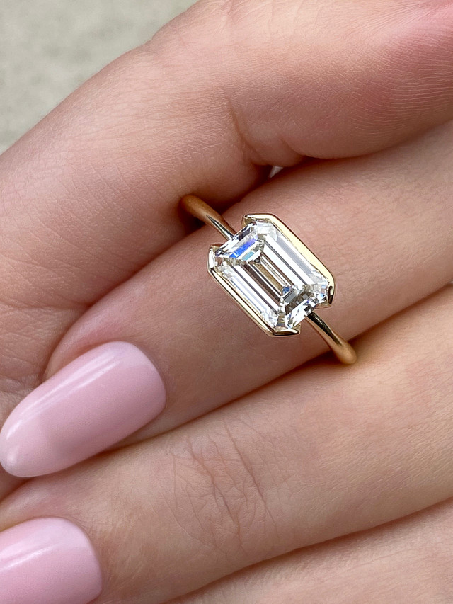 Still think emerald cuts are too prissy? Well, we’ve given them a pretty modern-day makeover with some engagement settings that turn traditional on its head. For instance, we love an emerald cut engagement ring set East-West, or horizontal, across the finger, which feels so chill like “oh, this lil’ thing…” or set in a split bezel that’s barely there, with a gently curved side view that softens the stone just a smidge.